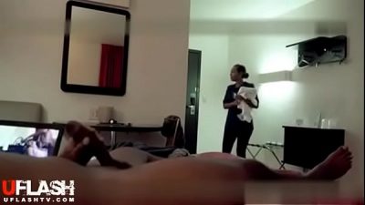 Skinny maid with big tits gives head and fucks wildly